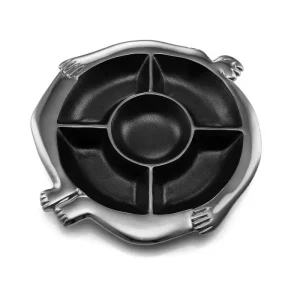 A centre piece that puts your favourite culinary creations on show. Areclined aluminum sculptural form balances a glass platter. Part of the iconic range and designed to last a lifetime of soirees.